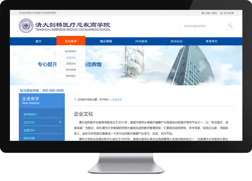 清大劍橋醫(yī)療總裁商學(xué)院成立于2011年,以“專注醫(yī)療”為院訓(xùn),商學(xué)院經(jīng)過近五年的教研、教學(xué)實踐,已經(jīng)形成了一套專業(yè)醫(yī)療健康產(chǎn)業(yè)教學(xué)體系和質(zhì)量體系,建立了一支專業(yè)的師資體系、成熟運營團隊體系。辦學(xué)更具行業(yè)特色,教學(xué)水平日益提高,已成為具有影響力培訓(xùn)醫(yī)療商學(xué)平臺;