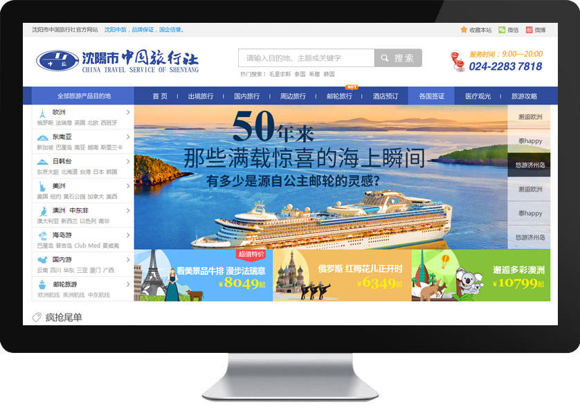 沈陽市中國旅行社成立于1992年,系屬于沈陽外事辦公室,1995年成立沈陽市旅游局后劃歸沈陽市旅游局,1997年我國開放境外旅游,沈陽市中國旅行社是本市較早且榮獲旅游局批準的、具備對外承辦中國公民出國旅游、對外接待境外游客資格的組團社。在省內(nèi)成為品牌效應好,信譽度較高,出境、入境人數(shù)較多的組團社,多次獲得省市的表彰。